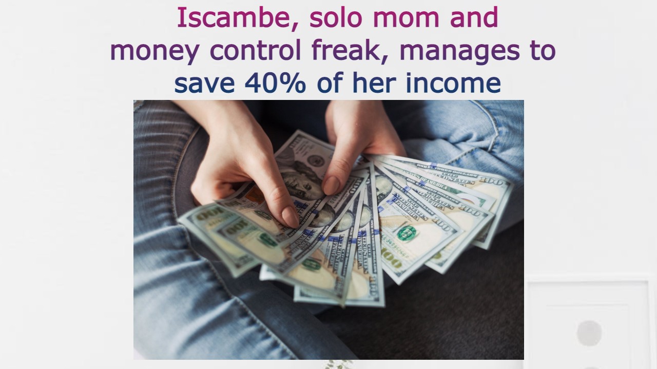 Iscambe, solo mom and money control freak, manages to save 40% of her income