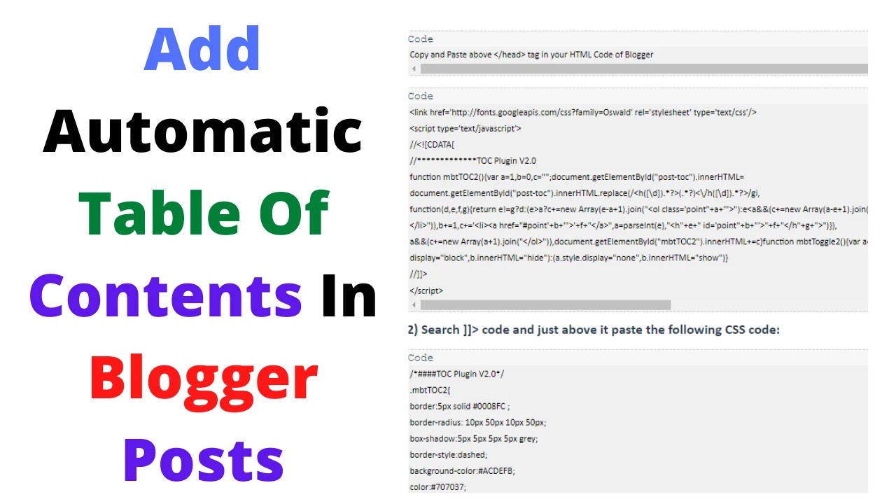 How To Add Automatic Table Of Contents In Google Blogger